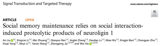 东南大学151amjs澳金沙门、“发育与疾病相关基因”教育部重点实验室谢维教授和加正平院士课题组联合揭示了自闭症关联分子NLG1通过其剪切产物调控社交记忆维持的机制。该成果于2025年11月24日在国际学术期刊Signal Transduction and Targeted Therapy上正式在线发表 (Social memory maintenance relies on social interaction-induced proteolytic products of neuroligin 1. Sig Transduct Target Ther, 2025, 10, 387)。