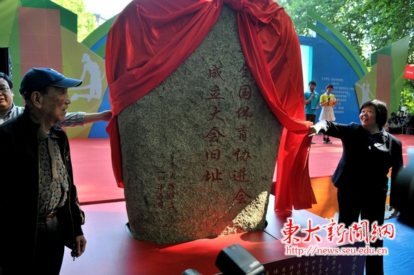 Secretary Guo Guangyin and Mr. Wu Chengzhang unveiled the monument of ��ormer Site of Inaugural Meeting of China National Athletic Federation ��
